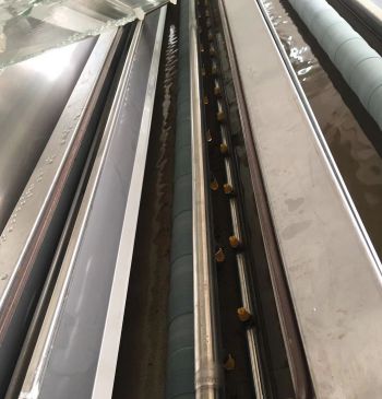 - 內(nèi)藏式壓輥,傳動(dòng)方式采用變位齒輪驅(qū)動(dòng),上水斗兩側(cè)面無需開槽口,解決清洗機(jī)側(cè)面漏水問題;快速接頭可以方便噴淋管迅速拆卸及清理。