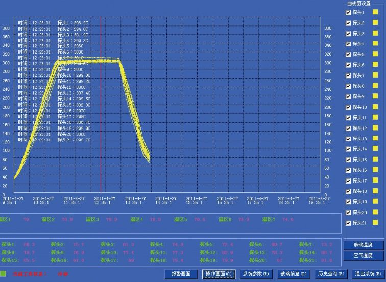 智能化控制,人機界面,靈活的溫度采集控制點,設有21個玻璃表面活動采集點,實時監(jiān)控玻璃狀態(tài)。